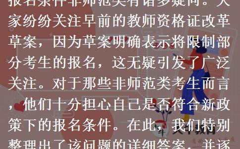 近年来,越来越多的非师范生加入到了教师资格证考试的队伍中,他们是否适合报考教师资格证呢?针对这一问题,我们将从政策和学历要求两方面进行探讨。 随着教育体制改革的推进,“无论教资如何改革”,从政策上来看,非师范生报考教师资格证不会在下半年被直接剔除。当前...详细内容>