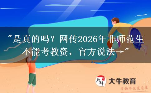 很多网上消息都会引起大家的关注,尤其是涉及到考试政策的消息更是备受考生们的关注。在这里,我们来对最新关于2026年非师范生考教资的政策进行详细解读,希望对需要考教师资格证的同学们有所帮助。