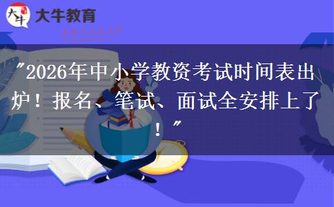 2026年中小学教资考试时间表已经发布,快来看看具体安排吧!对于需要考教师资格证的同学们,这些信息绝对不容错过。