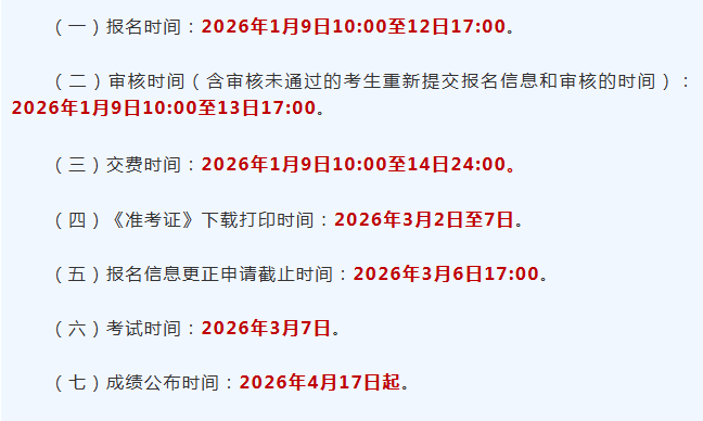 4. 报名信息更正申请截止时间: 2026年3月6日17:00