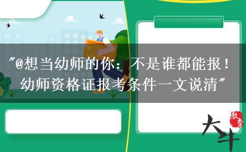 作为一名渴望成为幼师的学生,幼师资格证对你来说可能是一个重要的考验。考取幼师资格证,实际上是对自己教育水平和专业素养的一种检验。因此,了解幼师资格证的报考条件是非常重要的事情。本文将为你详细介绍幼师资格证的报考条件,希望能够帮助到正在准备考取幼师资格证的同学们。