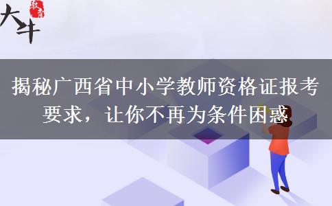 你是否在考虑报考广西省中小学教师资格证,但对于具体的报考要求一直感到困惑?不用担心,本文将为你解答这些问题,揭秘广西省中小学教师资格证报考要求。