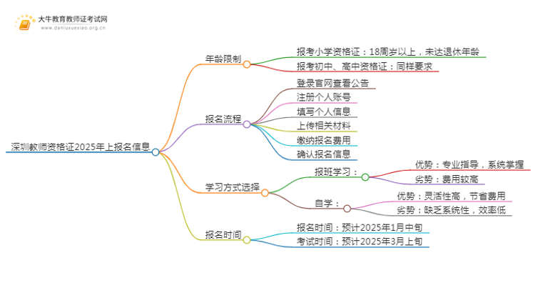 在准备参加2025年深圳教师资格证考试的过程中,许多考生关心的一个问题是年龄限制。本文将详细介绍深圳教师资格证2025年上报名的年龄限制、报名流程、学习方式的选择以及具体的报名时间,帮助考生更好地规划自己的备考之路。