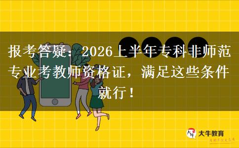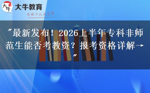 根据《教师法》的规定,2026年上半年专科非师范生可以报考教师资格证。只要新教师法改革尚未落实,专科学历可以报考幼儿、小学和初中的教师资格。详细内容>
