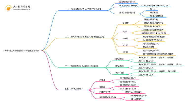 深圳成人高考每年举行一次,以下是从报名到开学的简要流程: