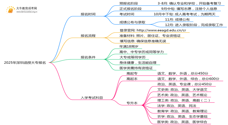 2025年深圳函授大专报名即将开始,许多考生都在关注具体的报名时间和流程。为了帮助大家顺利完成报名,以下将详细介绍深圳函授大专的报名时间、流程、条件以及入学考试科目。