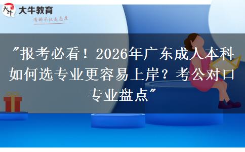 2026年广东成人本科考试即将开始,选择合适的专业是成功考取公务员的第一步。本文将为需要提升学历的同学介绍2026年广东成人本科报考相关信息,帮助大家如何更容易上岸,同时给出对口专业盘点,让考生有所收获,引导考生在线咨询大牛老师。