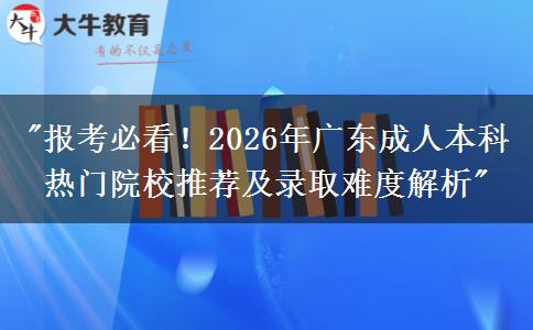 2026年,广东省成人本科考试再次开启,对于那些急需提升学历的同学来说,选择适合自己的院校和专业至关重要。本文将为大家介绍2026年广东成人本科学校推荐及录取难度解析,希望能够帮助考生们更好地备战考试。