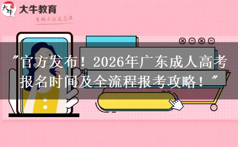 对于许多需要提升学历的同学来说,2026年广东成人高考将是他们迈向新生活的第一步。因此,2026年广东成人高考的报名时间和全流程报考攻略尤为重要。下面将为大家详细介绍2026年广东成人高考的相关信息,希望能帮助到广大考生们顺利报名并取得优异成绩。