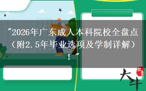 2026年广东成人本科教育格外吸引人,各种院校供选择,但很多人仍困惑于如何选校、报考条件等问题。本文将带您全面了解2026年广东成人本科院校情况以及相关报名流程和时间安排。