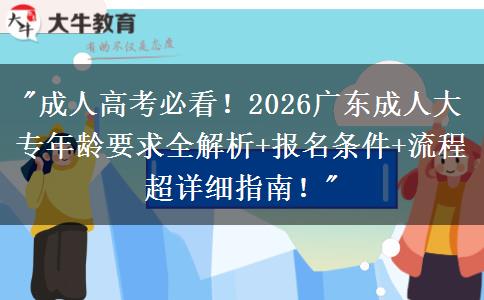 2026年广东成人大专学历考试即将到来,对于那些需要提升学历的同学来说,了解相关的年龄要求、报名条件和流程非常重要。本文将为大家详细解析2026年广东成人大专年龄要求、报名条件以及流程,希望可以帮助考生们更好地备考。