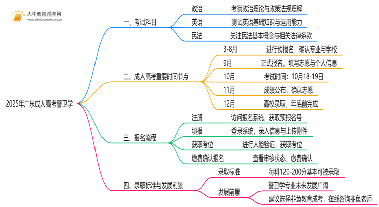 2025年广东成人高考警卫学的考试科目和相关流程是每位考生必须了解的重要信息。本文将为您详细介绍考试科目、重要时间节点、报名流程以及发展前景,帮助您做好充分准备。