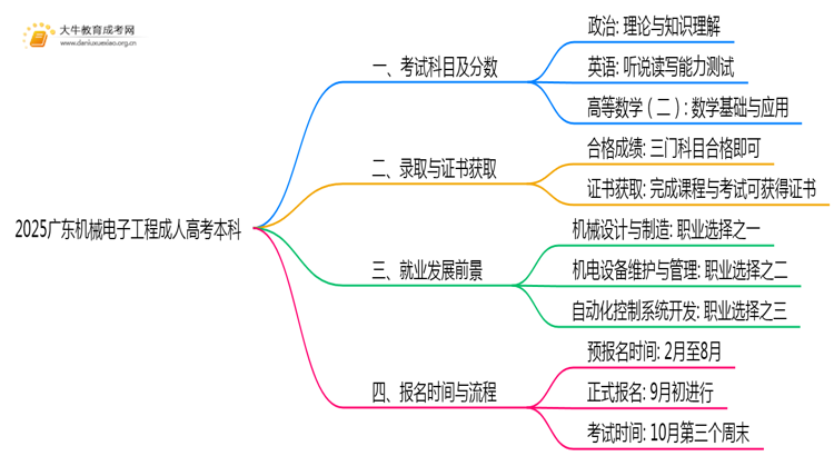 2025广东机械电子工程成人高考本科的入学考试科目设置相对简单,考生只需应对三门课程的挑战。本文将详细介绍考试科目、录取分数、就业前景以及报名时间等信息,帮助考生更好地准备即将到来的成人高考。