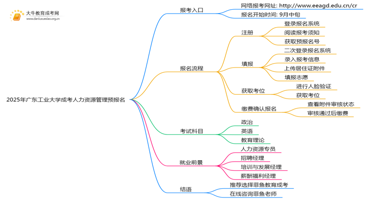 2025年广东工业大学成考人力资源管理(业余)预报名已正式开启!对于希望提升自身职业竞争力的考生来说,这是一个不可错过的机会。本文将为大家详细介绍广东工业大学成考人力资源管理的报考入口、报名流程、考试科目以及就业前景,帮助大家顺利完成报名。