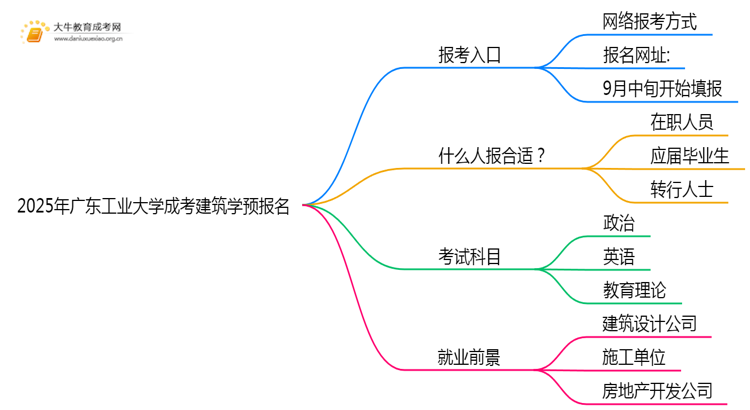 随着2025年广东工业大学成考建筑学(业余)的预报名开启,许多考生开始关注这一重要的学习机会。本文将为大家详细介绍报考入口、适合人群、考试科目以及就业前景,帮助同学们更好地了解这一专业。