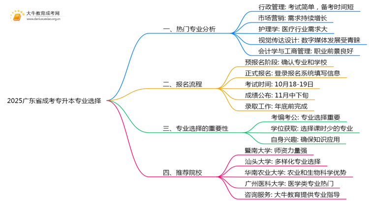 在2025年,广东省成考专升本的专业选择非常广泛,涵盖了多个领域,满足不同考生的需求。本文将从热门专业、报名流程、专业选择的重要性以及学校推荐四个方面进行详细探讨,帮助考生更好地了解和选择适合自己的专业。