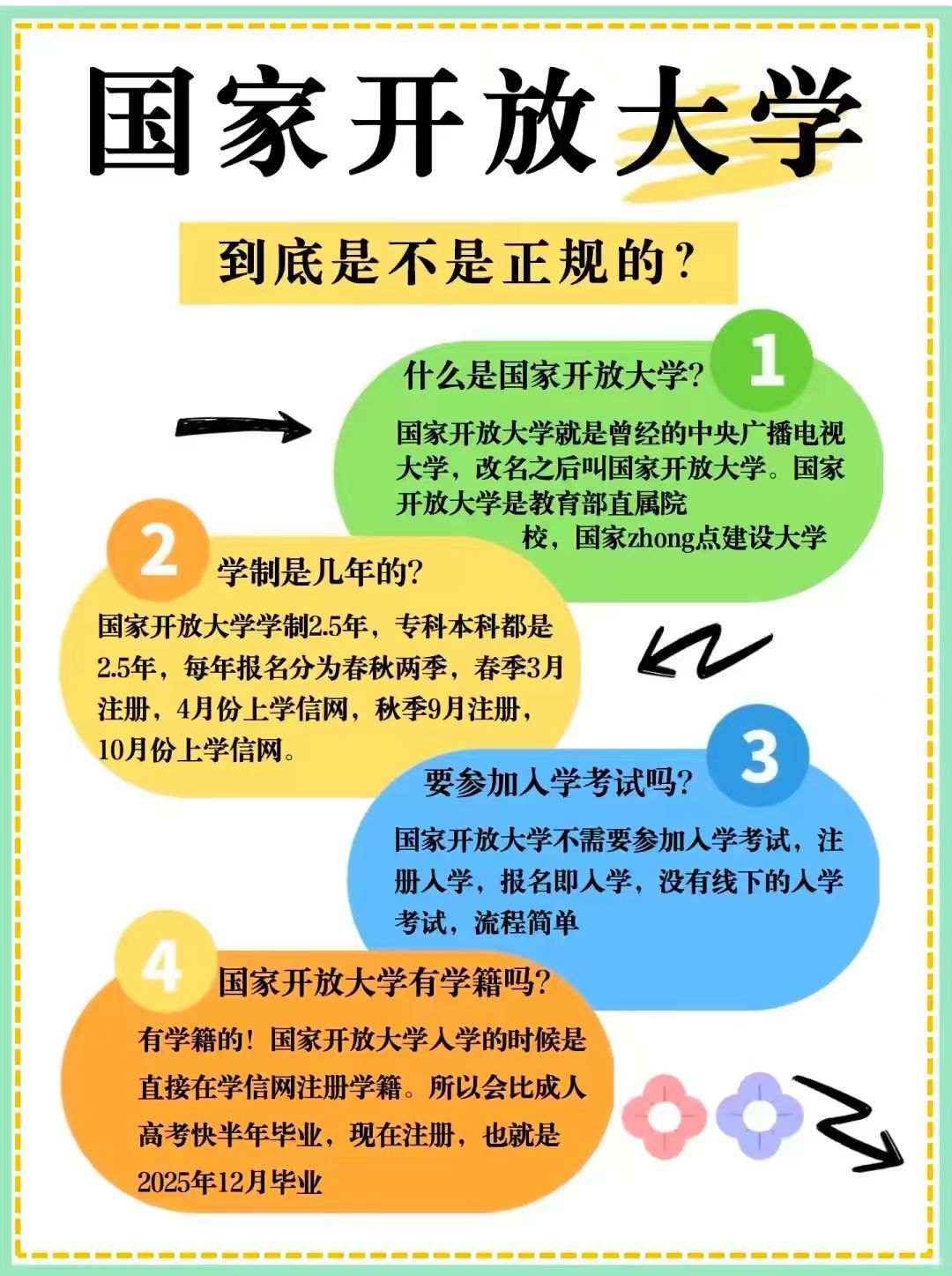 ⑴ 入学方式:2026国家开放大学仍然实行免试入学制度,无需参加国家统考,简化了考生的报考流程。