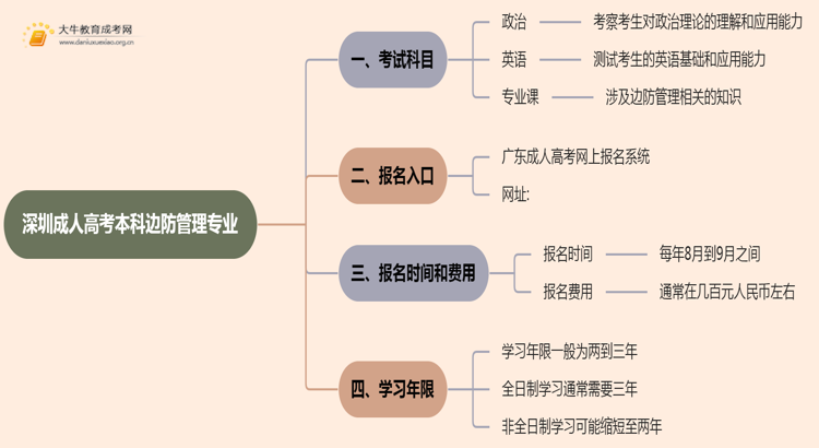 深圳成人高考本科边防管理专业是许多希望提升学历的考生的选择。本文将详细介绍该专业的考试科目、报名入口、报名时间、费用以及学习年限,帮助同学们更好地了解这一专业。