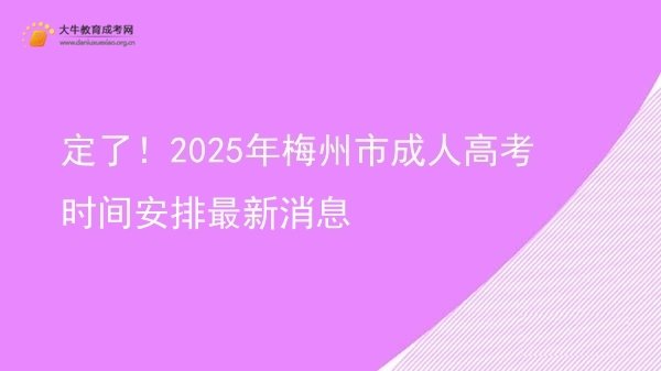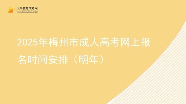 2025年梅州市成人高考的报名时间预计在9月中旬,考试时间定于10月18日至19日。考生可通过官方网站进行网络报名,网址为 http://www.eeagd.edu.cn/cr。成人高考适合在职人员、待业人员、高考落榜生及转行人士,考试科目根据层次不同而有所区别。详细内容>