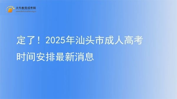 2025年汕头成人高考报名时间预计在9月中旬,考试定于10月18日至19日。适合在职人员、待业人员、高考落榜生及转行人士报考。考试分为高起专、高起本和专升本,科目各异。成人高考是提升学历的有效途径,考生可选择大牛教育进行专业辅导,获取更多备考信息。详细内容>