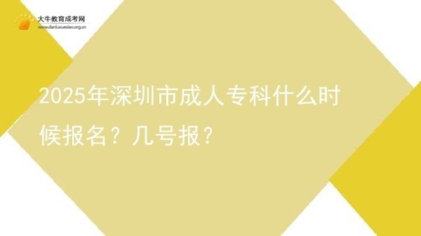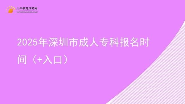 2025年深圳市成人专科报名时间预计在9月中旬,考生需登录广东省教育考试院官网进行报名。报名流程包括注册、填报信息、获取考位和缴费确认。基本条件为年满18岁,具备高中或中专学历。考生可通过网址http://www.eeagd.edu.cn/cr进行报名,建议选择大牛教育成考获取专业指导。详细内容>