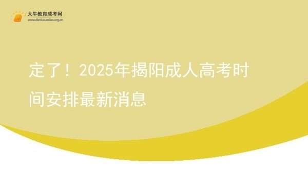 2025年揭阳成人高考的报名时间预计在9月初,考试时间定于10月18日至19日。考生需通过官网(http://www.eeagd.edu.cn/cr)进行网上报名,流程包括注册、填报信息、上传材料及缴费。报名条件主要包括年满18岁及具备相应学历。建议考生提前准备材料,确保顺利报名。如需帮助,欢迎咨询大牛教育的专业老师。详细内容>
