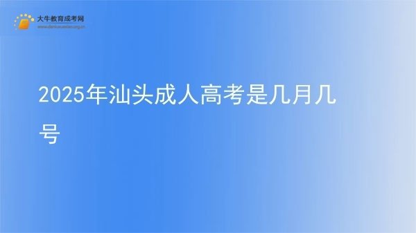 2025年汕头成人高考报名时间预计在9月中旬,考试时间为10月18日至19日。报名将通过官网 http://www.eeagd.edu.cn/cr 进行,考生需提前注册并填写相关信息。考试难度较低,450分满分,200分即可录取。请同学们抓紧时间准备,确保顺利报名和考试。详细内容>