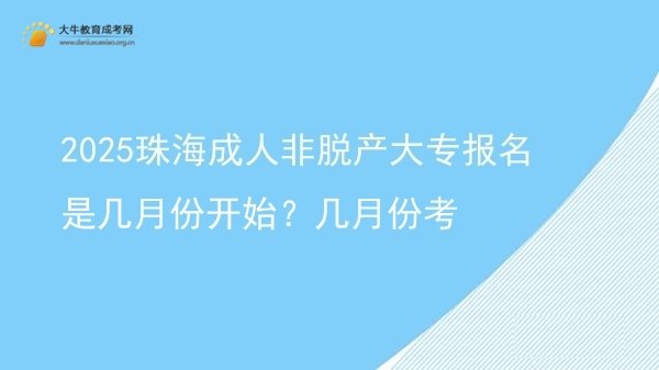 2025年珠海成人非脱产大专的报名时间预计在9月中旬,考试时间定于10月18日至19日。学习时长一般为2.5至3年,符合条件的考生应尽快报名。报名条件包括年满18岁,具备高中或中专学历等。选择学校时,建议关注师资和毕业率,以确保顺利毕业。详细内容>