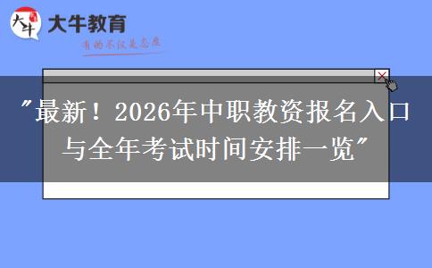 近年来,教师资格证已成为许多教育工作者的必备证书,而2026年中职教师资格证的报名资讯也备受考生关注。为了让准备考取中职教资证书的同学们能够及时了解最新动态,特整理了2026年中职教资报名入口及全年考试时间安排的相关信息,希望能够帮助大家更好地备考。
