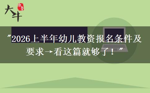 对于需要考取幼儿教师资格证的同学们来说,了解2026上半年幼儿教资报名条件及要求是至关重要的。只有明确了报名条件才能有针对性地准备,提高通过率。接下来,我们将详细介绍2026上半年幼儿教师资格证的报名条件和要求,希望能给考生们带来一定帮助。