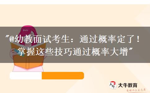 参加幼教面试是每一个考教师资格证的同学都必须经历的一关。为了帮助大家提高通过率,今天我们就来详细讨论幼教面试的一些技巧和注意事项,希望能对大家有所帮助。