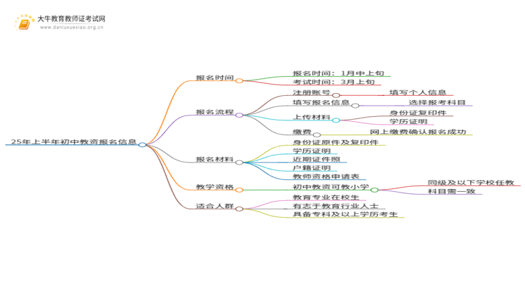 根据最新的安排,25年上半年初中教资的报名时间预计在1月中上旬进行,具体的考试时间为3月上旬。考生需要在规定的时间内完成网上报名,以确保能够顺利参加考试。
