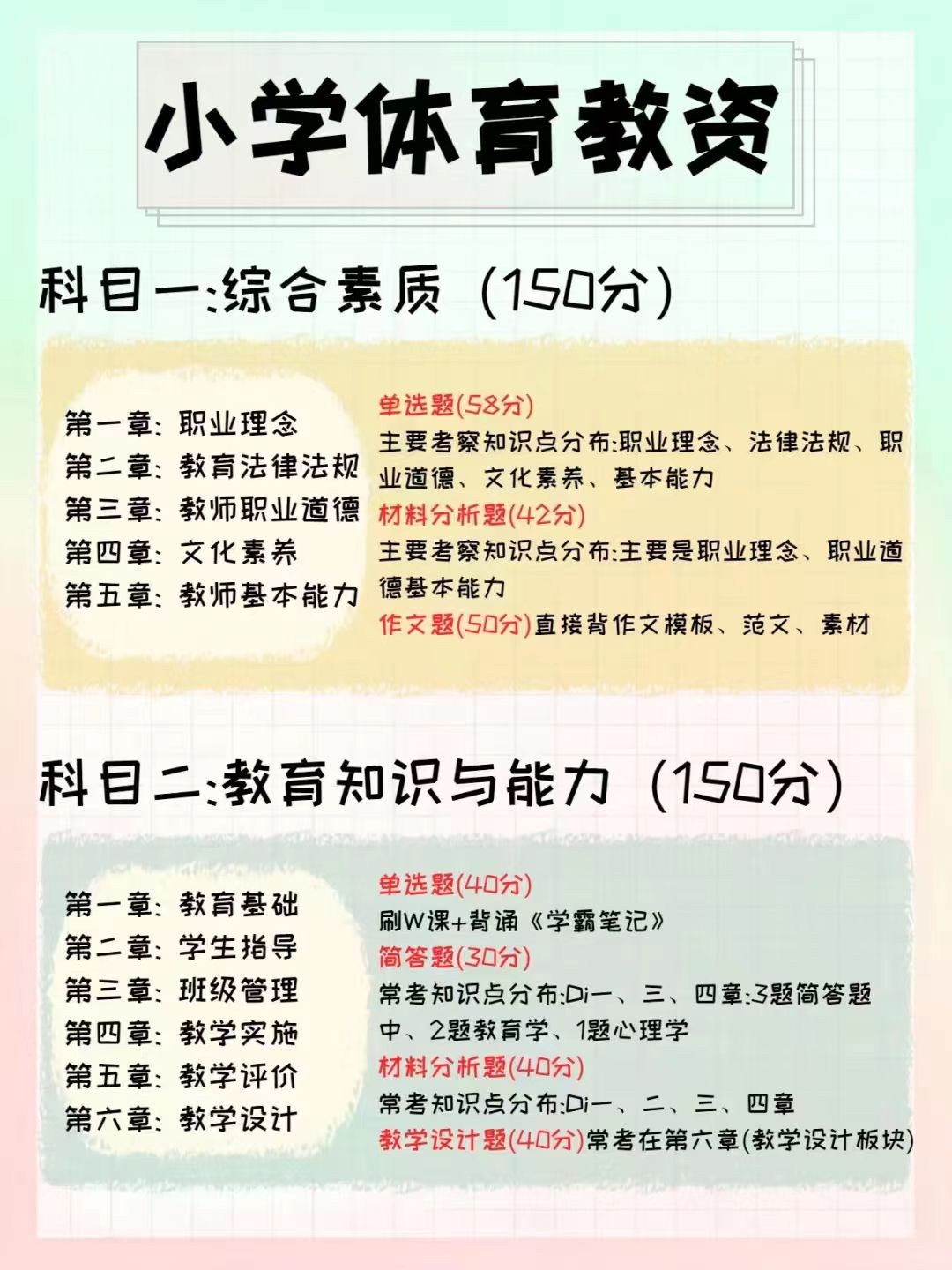 2026年考取小学体育教师资格证的同学们,首先要了解小学体育教师资格证考试的科目概述。这个考试不仅要求你掌握体育教学理论知识,还需要具备综合素质。整个考试分为笔试和面试两个部分,其中笔试包括《综合素质》和《教育教学知识与能力》两个科目,而面试则主要考察体育学科的内容。