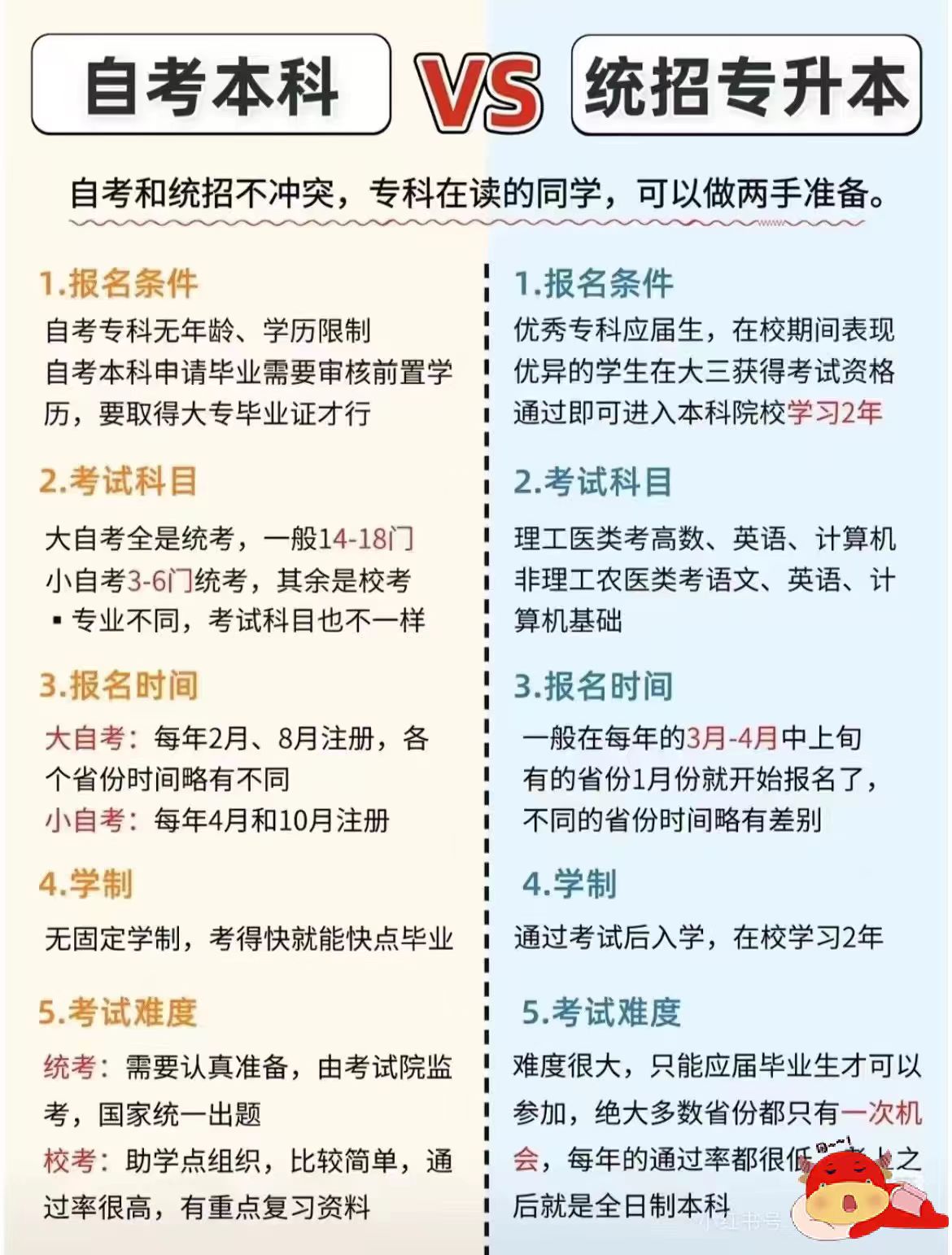 4. 入学门槛不同:自考本科免试入学,只需考完所有课程即可毕业;而全日制本科需参加高考入学。