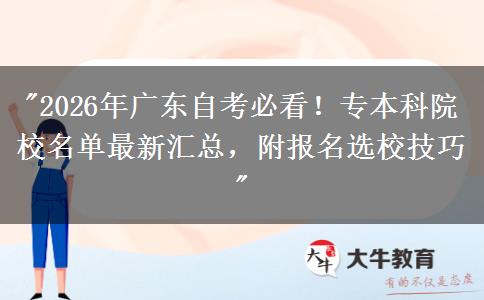 2026年广东自考提供了丰富的学校资源和学习机会,为考生们提供了更多选择和发展空间。通过认真备考,选校合适,相信每位考生都能取得优异的成绩。希望广大考生能够认真对待2026年的自考,努力提升自己的学历水平,为未来的发展打下坚实的基础。如果有任何问题或疑惑,欢迎在线咨询大牛老师,获取更多关于自学考试的帮助和指导。祝愿所有考生能够顺利通过2026年的广东自考,取得理想的成绩和学历!