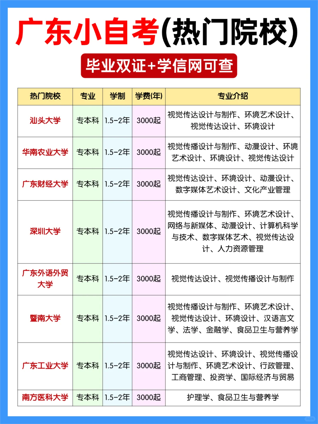 五、广东省小自考学校和专业推荐