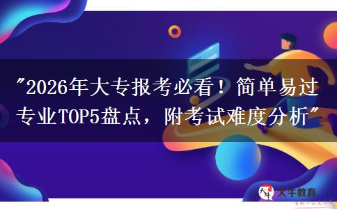 2026年大专考试即将到来,对于需要提升学历的同学来说,选择适合自己的专业至关重要。在选择专业时,要考虑是否好拿证好就业,这一切都取决于自己的努力与学习。下面将为大家盘点2026年大专自考的简单易过专业TOP5,并附上考试难度分析,希望能给考生们一些启发。
