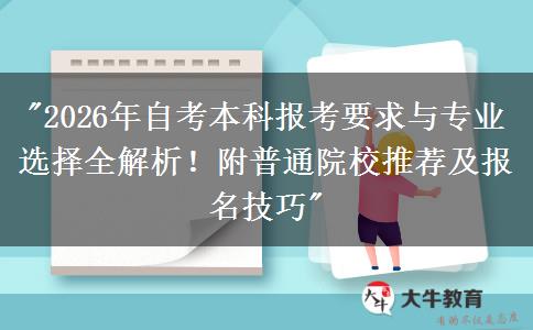 2026年自考本科是许多需要提升学历的同学的选择,而在报考过程中,了解相关要求和专业选择至关重要。本文将为大家详细解析2026年自考本科的报考要求和专业选择,希望能够帮助各位考生顺利完成报名流程。