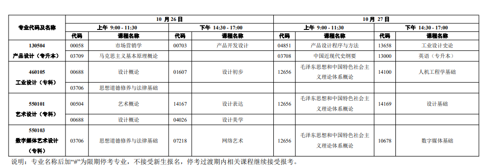 (4)10月新开考专业课程安排