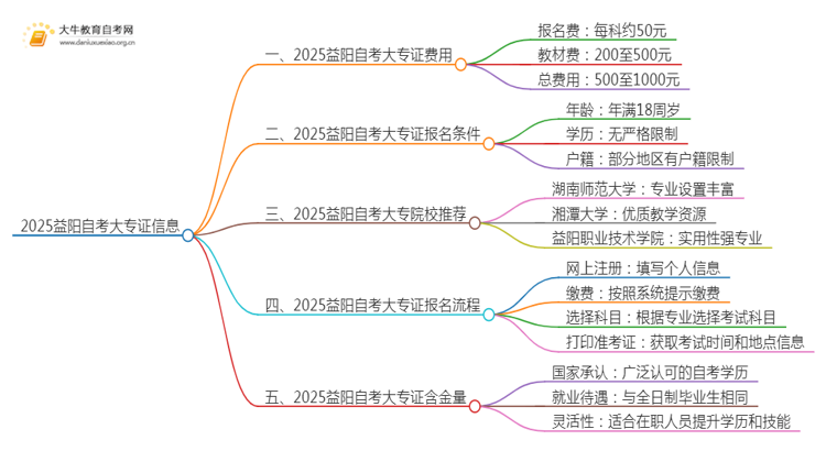 2025益阳自考的费用和相关信息是许多考生关注的重点。自考大专证不仅是提升学历的重要途径,也是职业发展的助推器。本文将详细介绍2025益阳自考大专证的费用、报名条件、推荐院校、报名流程以及其含金量,帮助考生更好地了解自考。