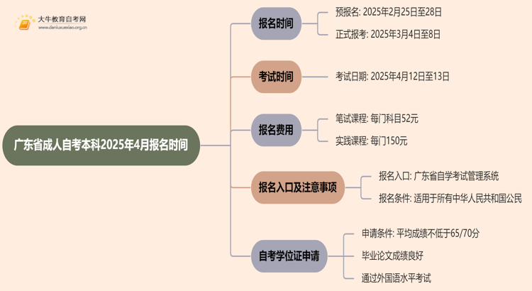 广东省成人自考本科2025年4月的报名时间为: