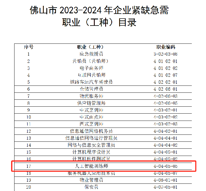 (但人工智能训练师在广州企业紧缺急需工种目录内,三级补贴金额可在原来基础上上浮30%,符合申请条件,即可申请2600元补贴)