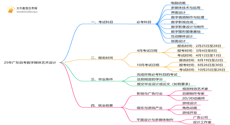 在2025年,广东自考数字媒体艺术设计专业将为考生提供丰富的学习和发展机会。本文将详细介绍该专业的考试科目、报名时间、毕业条件以及就业前景,帮助考生更好地规划自己的学习路径。