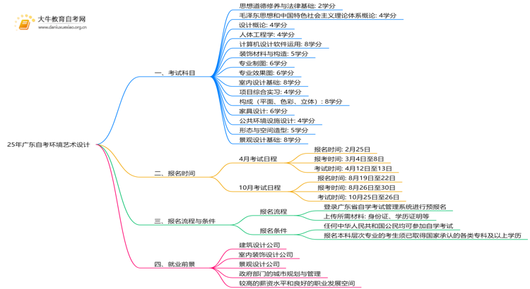 通过了解25年广东自考环境艺术设计的考试科目、报名时间、流程及条件,考生可以更好地规划自己的学习和考试策略,争取顺利完成学业。