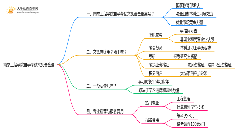 综上所述,南京工程学院自学考试文凭的含金量较高,能够为考生提供多种职业发展机会。通过合理的学习规划和专业选择,考生可以在较短的时间内获得认可的学历,提升自身的竞争力。希望本文能帮助同学们更好地了解南京工程学院自学考试的相关信息。