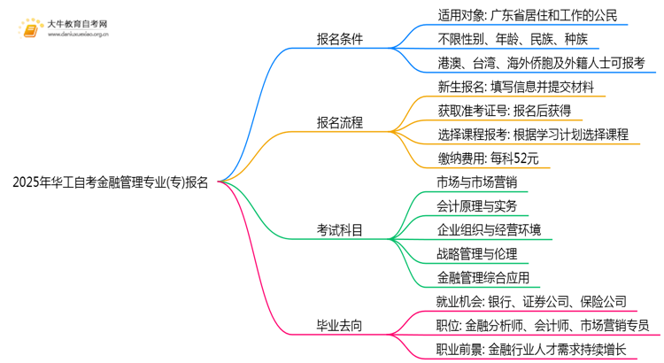 2025年华工自考金融管理专业(专)的报名流程相对简单,旨在为广大考生提供便利。以下是关于报名条件、流程、费用及毕业去向的详细介绍,帮助同学们顺利完成报名。