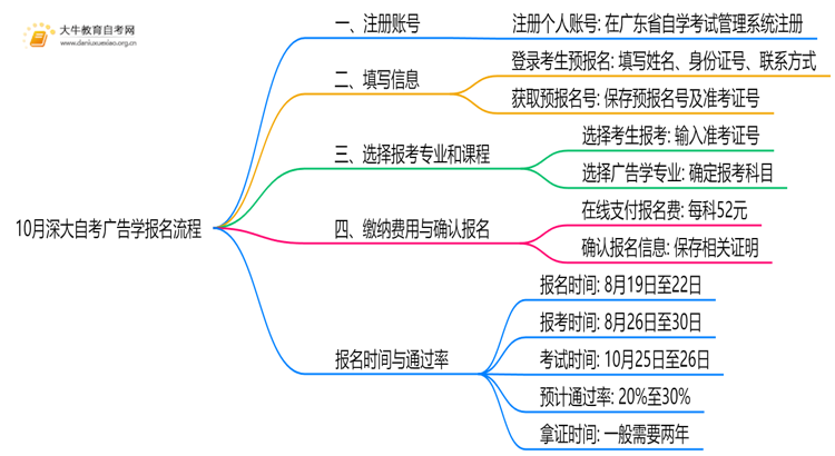 在10月深大自考广告学的报名过程中,考生需要了解一系列的步骤和时间安排,以确保顺利完成报名。以下是详细的报名流程和相关信息,希望能帮助到参加自考的同学们。