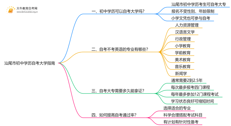 通过以上信息,汕尾市初中学历的考生可以更清晰地了解自考的相关政策和备考策略,从而为自己的学历提升之路做好准备。
