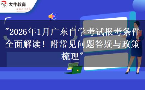 4. 如何提高自学考试的通过率?坚持学习,多做练习题,及时总结,提高对知识的掌握。通过对2026年1月广东省自学考试报考条件的全面解读,相信各位需要提升学历的同学已经对报名流程、拿证时间和考试科目设置等方面有了更清晰的了解。希望大家能够制定科学的学习计划,提高通过率,顺利完成考试。如有更多问题,欢迎在线咨询大牛老师,为你提供更多帮助。祝愿大家考试顺利,早日拿到属于自己的证书!