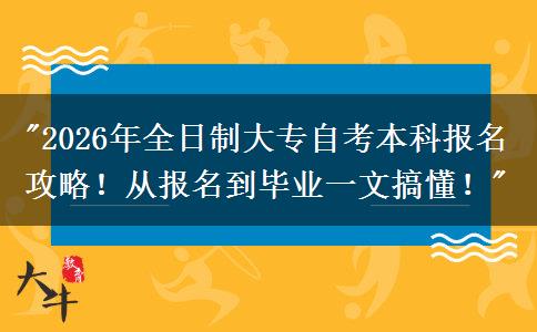2026年全日制大专自考本科,作为需要提升学历的同学,想必你们对于报名攻略一定关注备至。在这里,我们将为大家提供详细的报名攻略,让你们从报名到毕业都了然于心,轻松应对自学考试的挑战。希望通过本文的分享,让各位考生们有所收获,有需要的同学们也可以在线咨询大牛老师,一起加油吧!